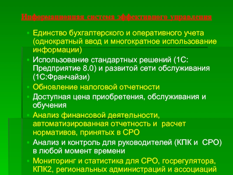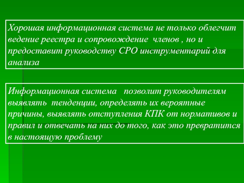 Информационная система позволит руководителям выявлять тенденции, определять их вероятные причины, выявлять отступления КПК от нормативов и правил и отвечать на них до того, как это превратится в настоящую проблему