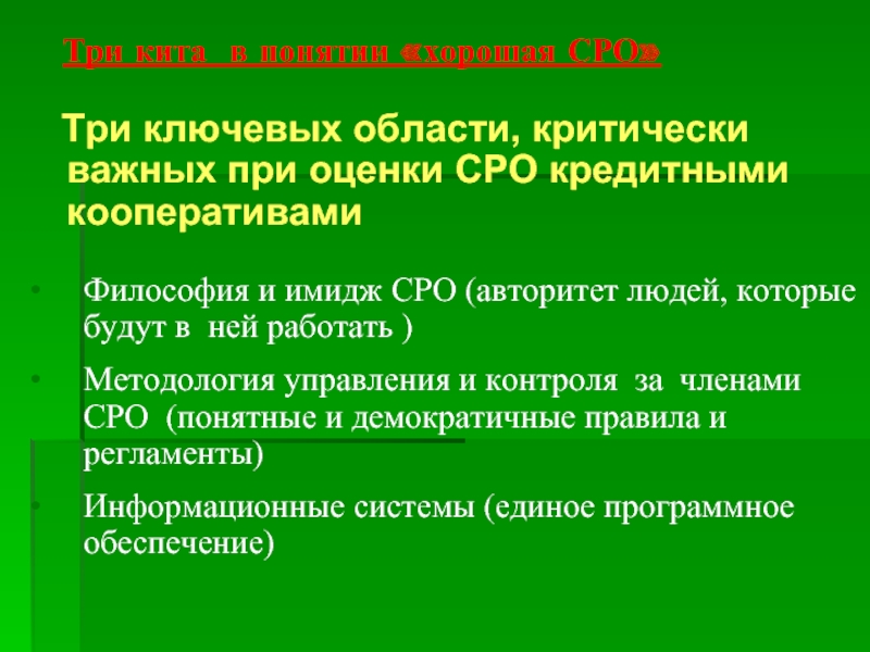 Философия и имидж СРО (авторитет людей, которые будут в ней работать )