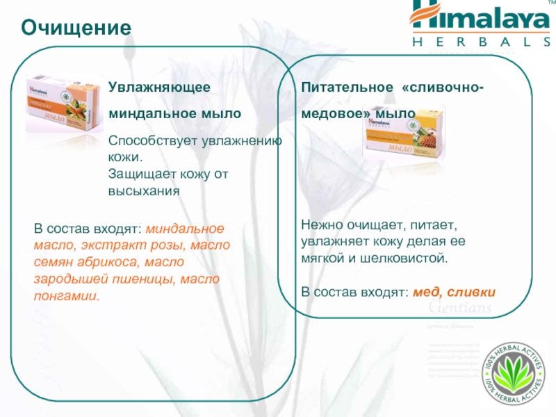 Ним, зародыши пшеницы, акация, пажитник, розмарин, лимон, ветиверия и кунжут.