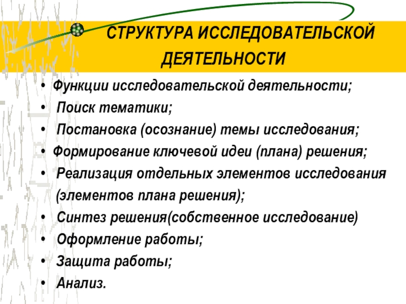 Слайд 14 СТРУКТУРА ИССЛЕДОВАТЕЛЬСКОЙ ДЕЯТЕЛЬНОСТИ