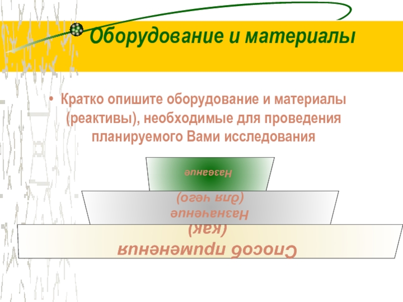 Кратко опишите оборудование и материалы (реактивы), необходимые для проведения