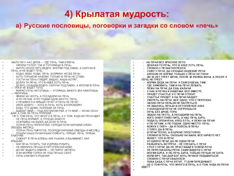 :: ДОБРАЯ-ТО РЕЧЬ, ЧТО В ИЗБЕ ЕСТЬ ПЕЧЬ.