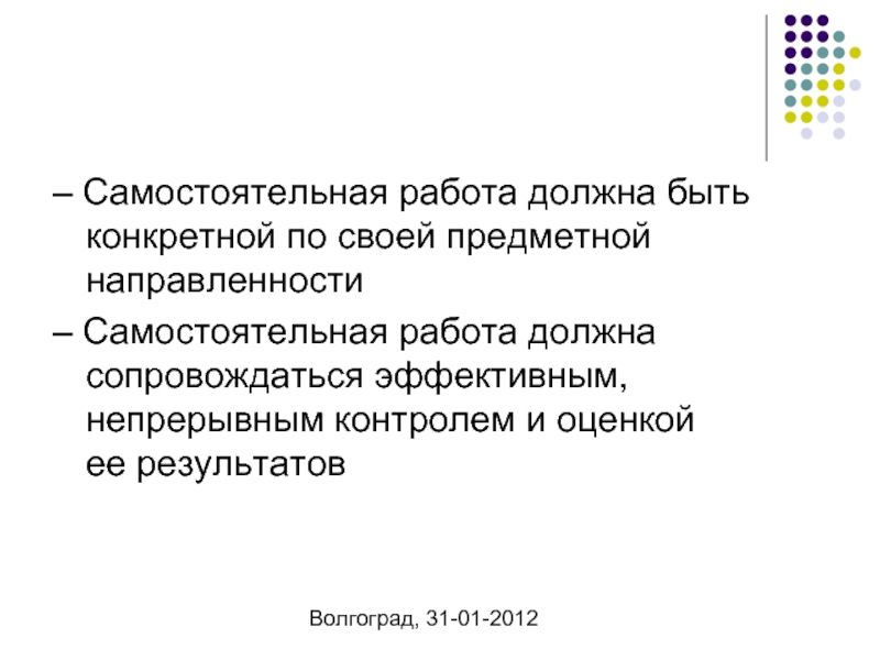 – Самостоятельная работа должна быть конкретной по своей предметной направленности