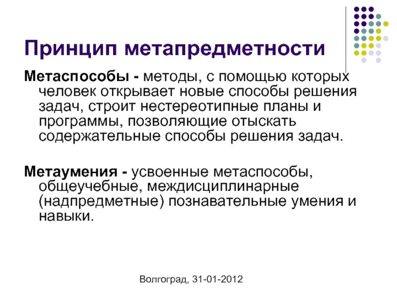 Метаумения - усвоенные метаспособы, общеучебные, междисциплинарные (надпредметные) познавательные умения и навыки.