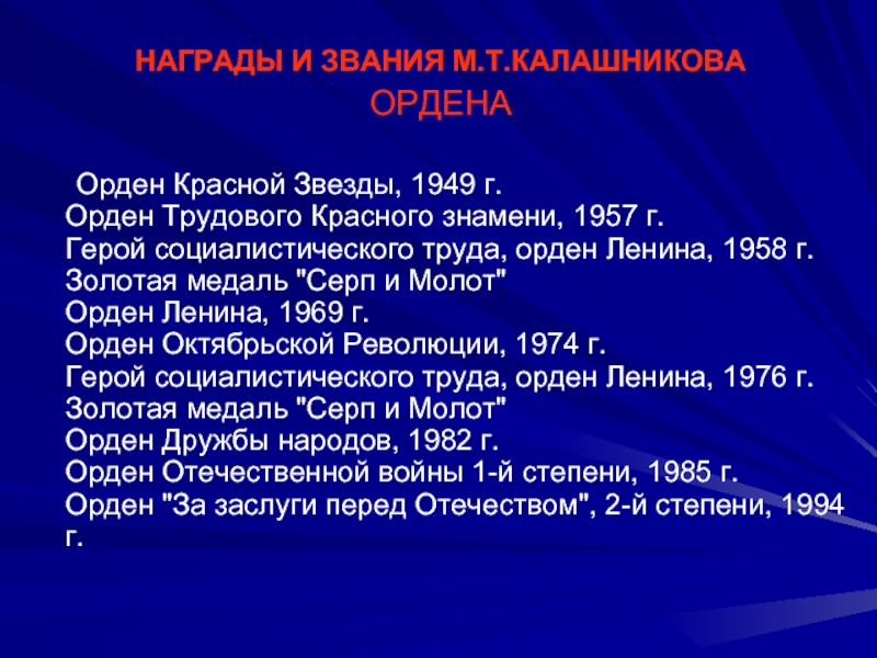 Слайд 14НАГРАДЫ И ЗВАНИЯ М.Т.КАЛАШНИКОВА