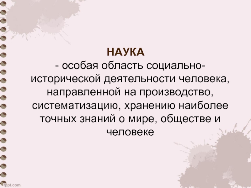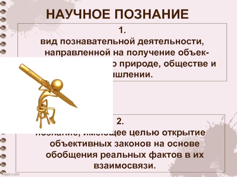 вид познавательной деятельности, направленной на получение объек-тивных, знаний о природе, обществе и мышлении.