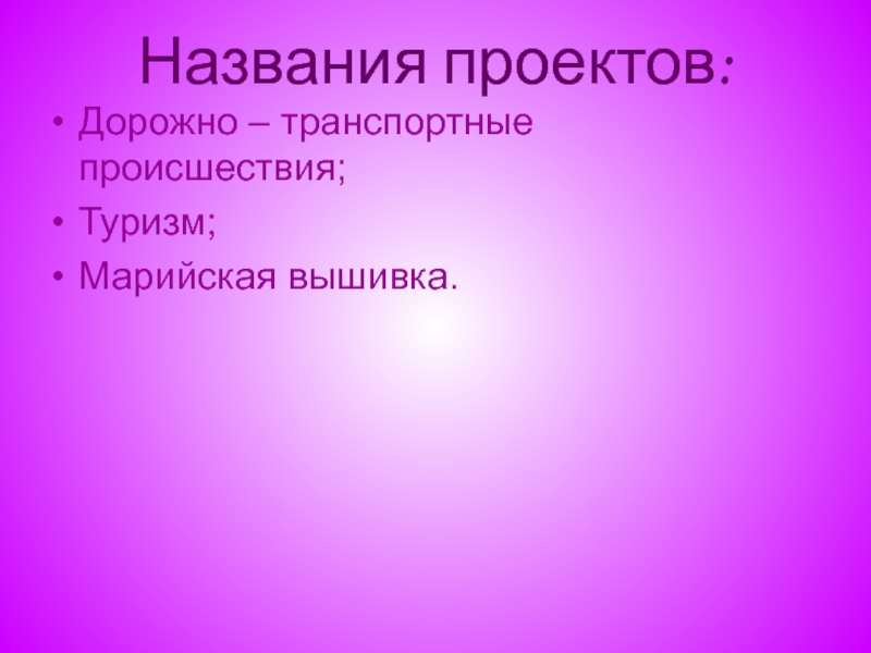 Слайд 6 Названия проектов: