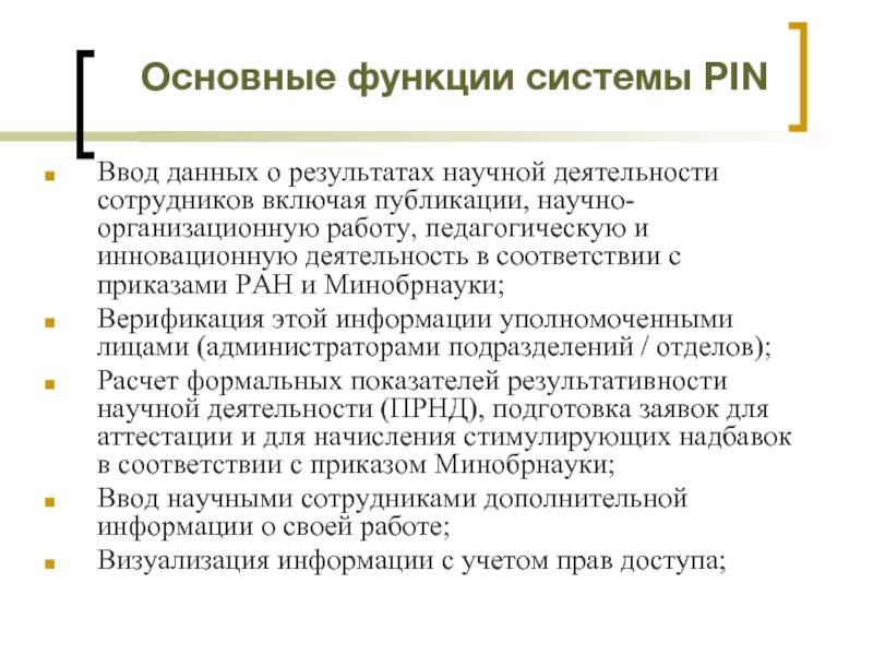 Слайд 17Основные функции системы PIN