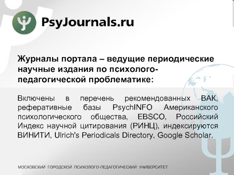 Экспертная база российских журналов по психологии и смежным дисциплинам.