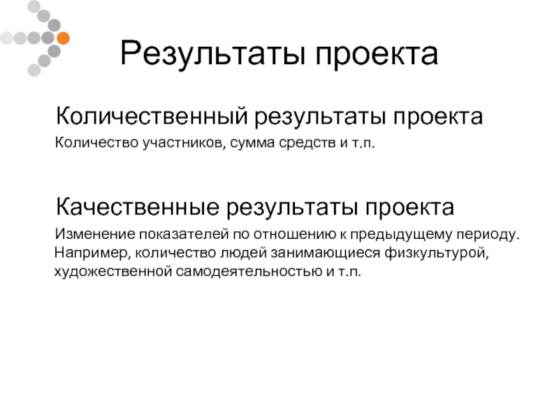 показателей по отношению к предыдущему периоду. Например, количество людей занимающиеся физкультурой, художественной самодеятельностью и т.п.