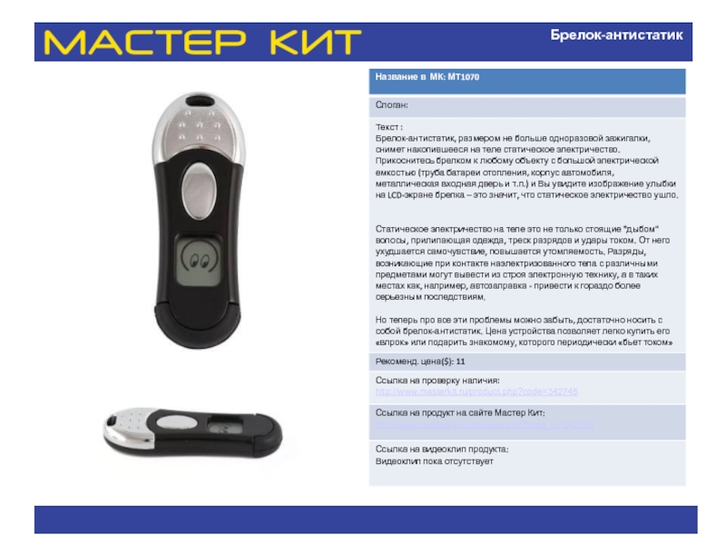 Слайд 11Брелок-антистатик