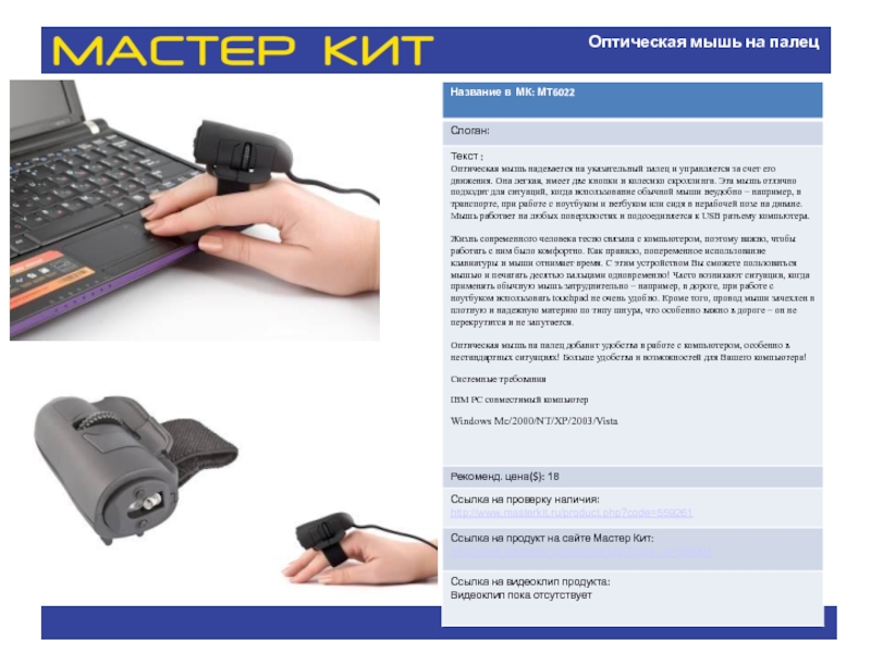 Слайд 33Оптическая мышь на палец
