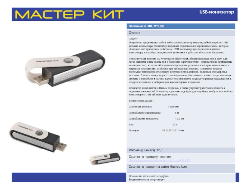 Слайд 23USB-ионизатор