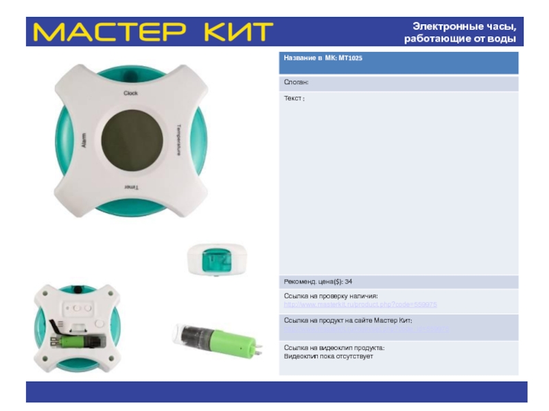 Слайд 32Электронные часы, работающие от воды
