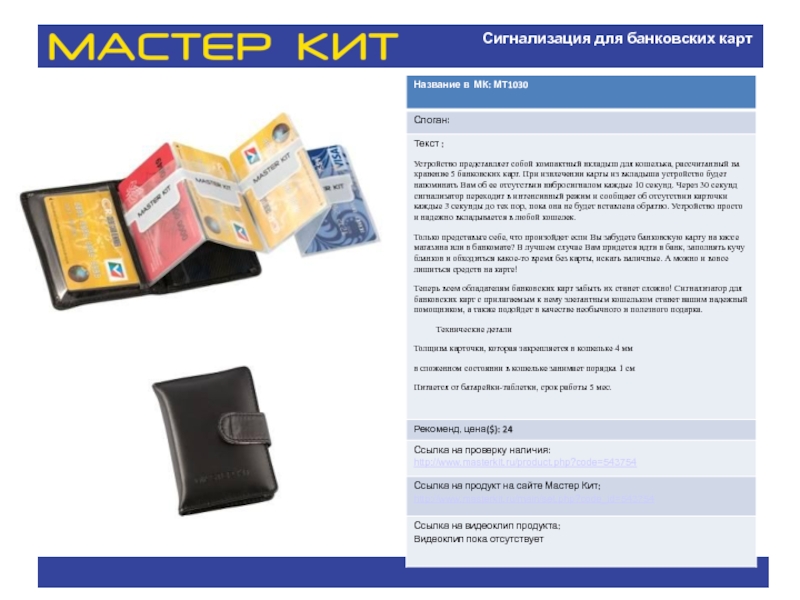 Слайд 24Сигнализация для банковских карт