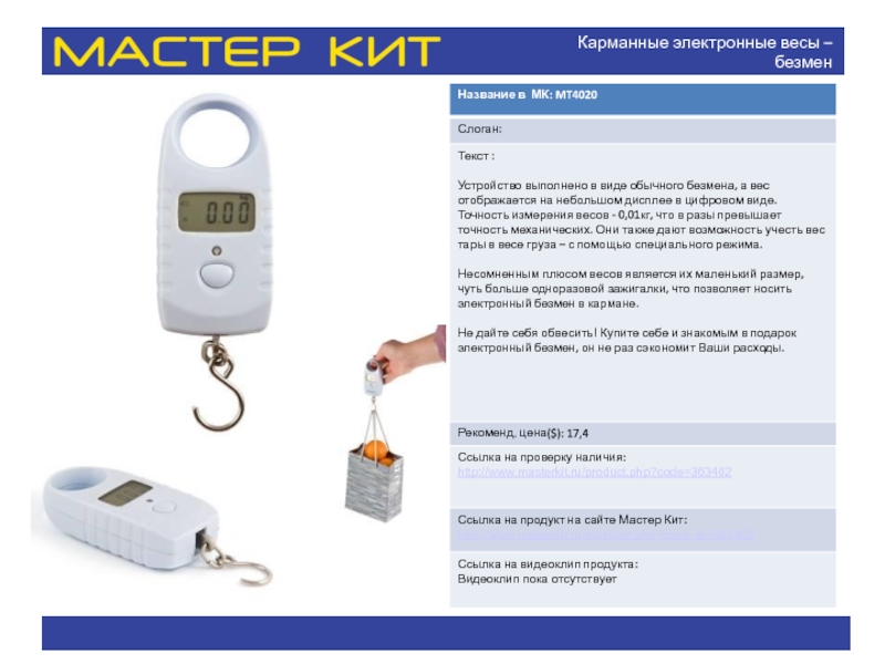 Слайд 2Карманные электронные весы – безмен