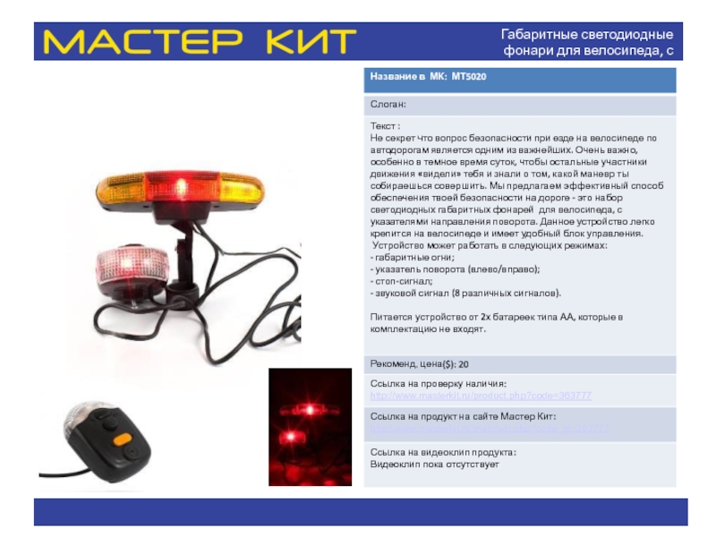 Слайд 9Габаритные светодиодные фонари для велосипеда, с указателями направления поворота.