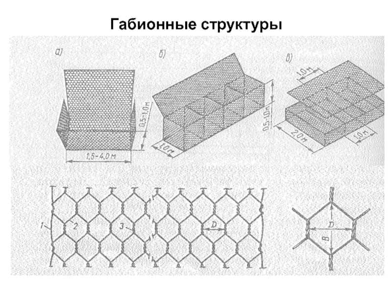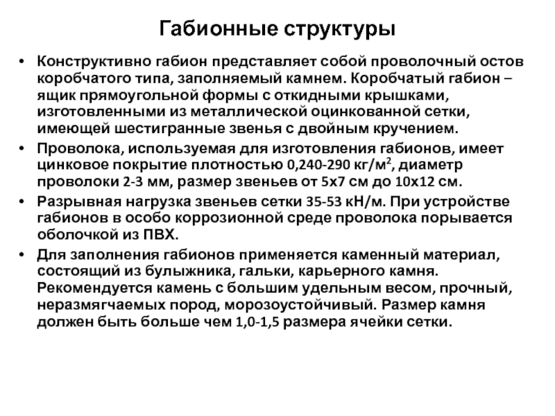 Конструктивно габион представляет собой проволочный остов коробчатого типа, заполняемый