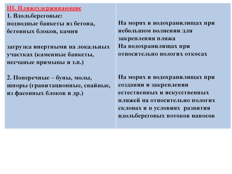 пляжеудерживающие: вдольбереговые подводные банкеты, буны, шпоры.
