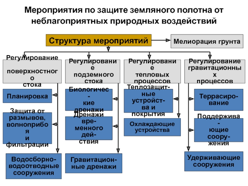 Слайд 3Мероприятия по защите земляного полотна от неблагоприятных природных воздействий