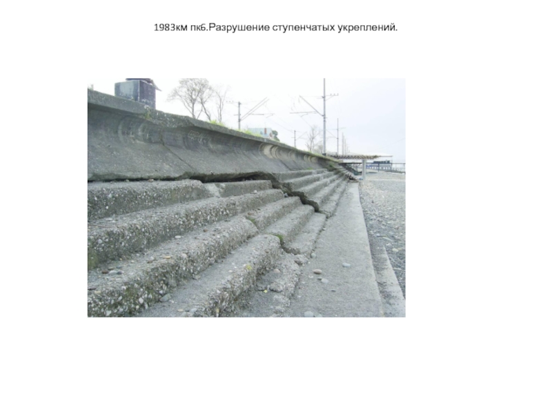 Слайд 251983км пк6.Разрушение ступенчатых укреплений.