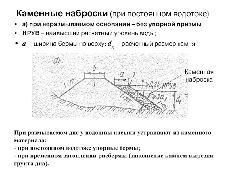 размыва основания у подошвы откоса и восприятия составляющей веса вышележащего массива наброски.