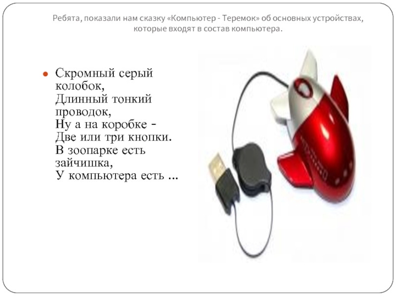 Слайд 12Ребята, показали нам сказку «Компьютер - Теремок» об основных устройствах, которые