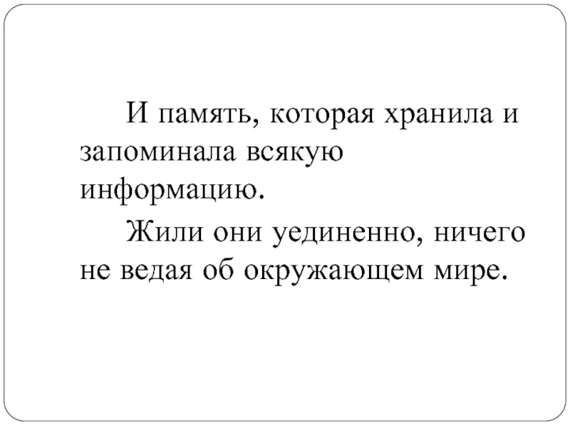 Жили они уединенно, ничего не ведая об окружающем мире.