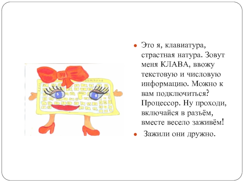 Это я, клавиатура, страстная натура. Зовут меня КЛАВА, ввожу