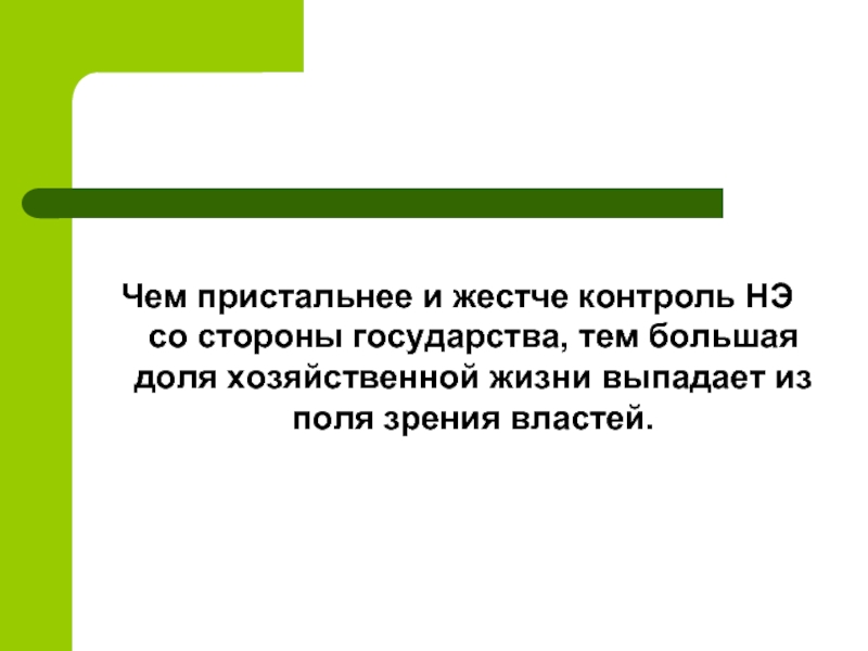 Слайд 13Чем пристальнее и жестче контроль НЭ со стороны государства, тем большая
