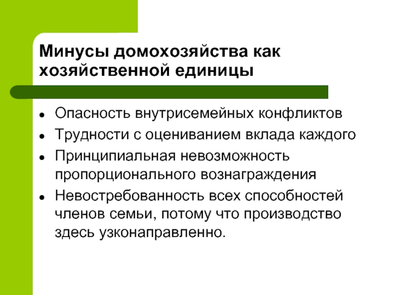 Слайд 18Минусы домохозяйства как хозяйственной единицы