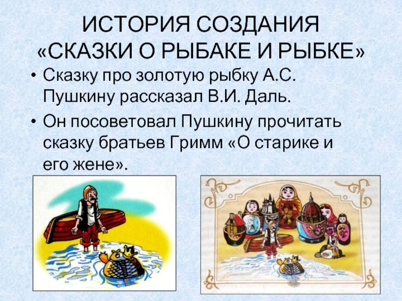 «Сказка о рыбаке и рыбке» похожа на русскую народную сказку.