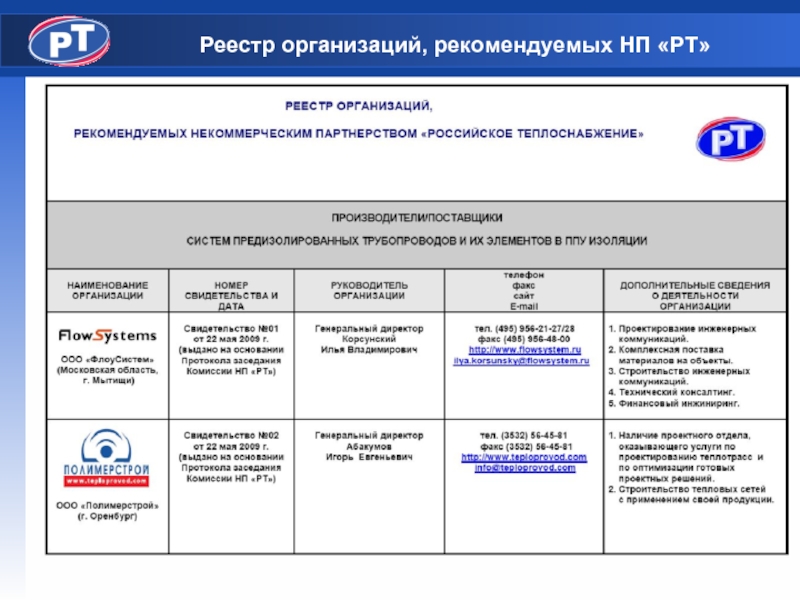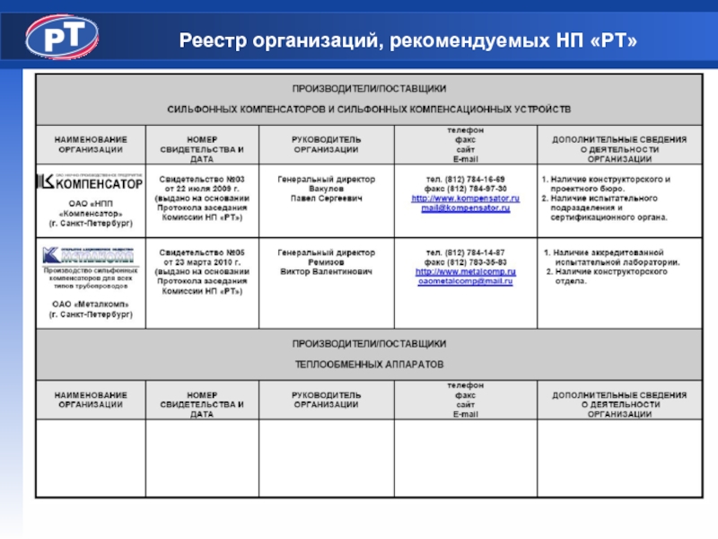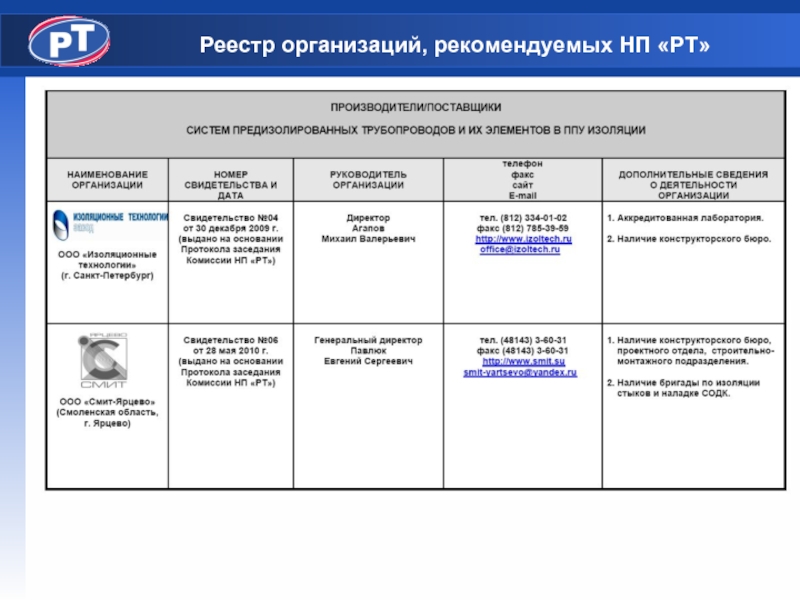 РЕКОМЕНДУЕМЫХ НП «РТ»