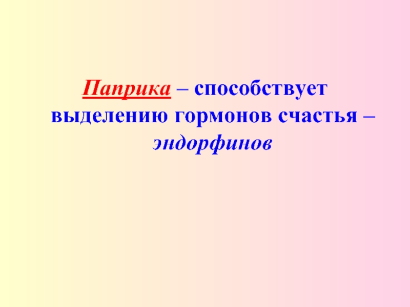 Слайд 14Паприка – способствует выделению гормонов счастья – эндорфинов