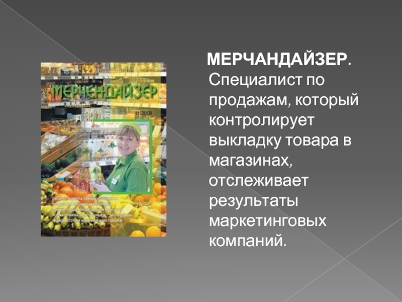 Слайд 20 МЕРЧАНДАЙЗЕР. Специалист по продажам, который контролирует выкладку товара в