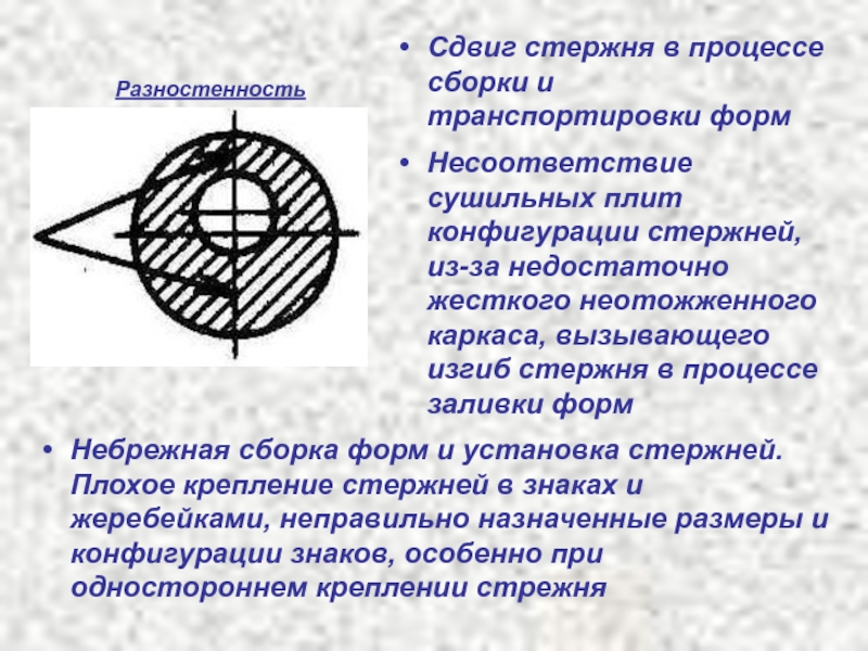 Небрежная сборка форм и установка стержней. Плохое крепление стержней в знаках и жеребейками, неправильно назначенные размеры и конфигурации знаков, особенно при одностороннем креплении стрежня