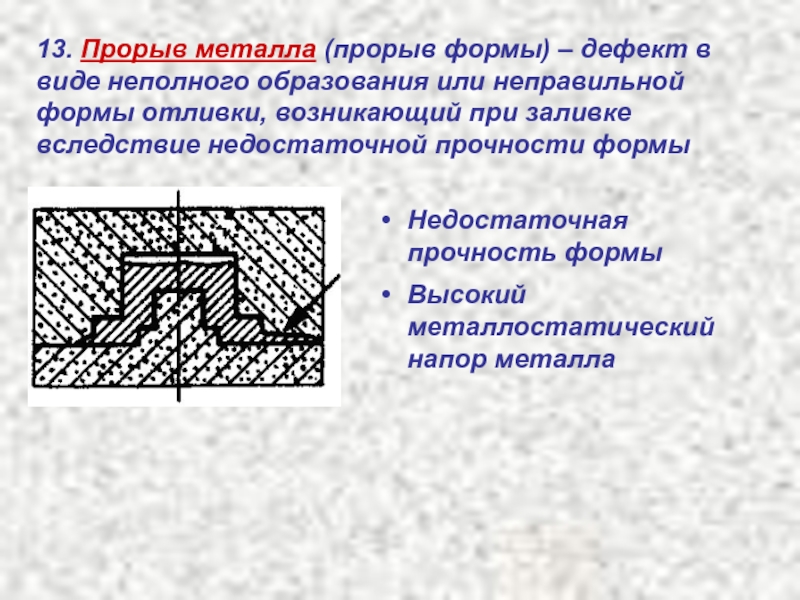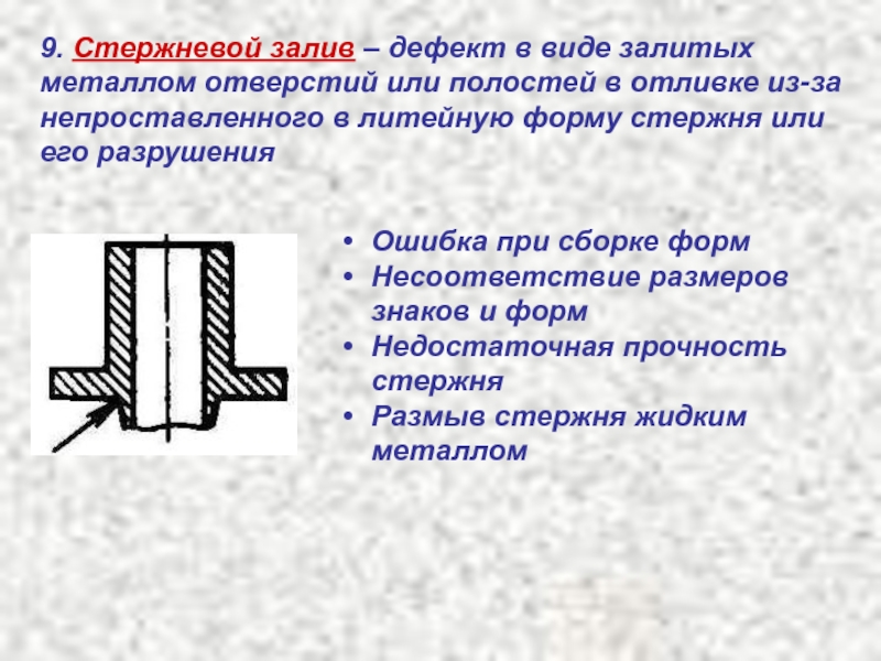 Слабое крепление стержней в знаках и жеребейками, большой зазор между знаком стержня и знаковой частью формы, слабые жеребейки