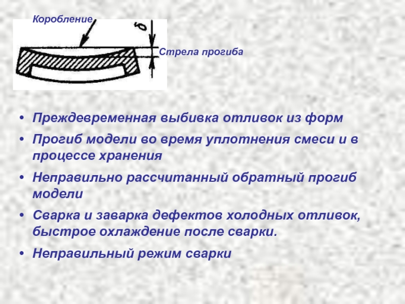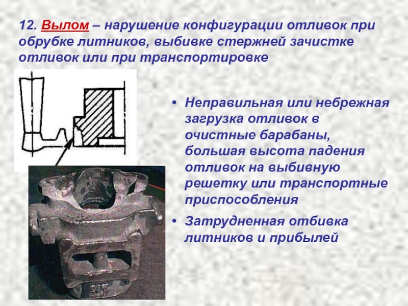 Неправильная или небрежная загрузка отливок в очистные барабаны, большая высота падения отливок на выбивную решетку или транспортные приспособления