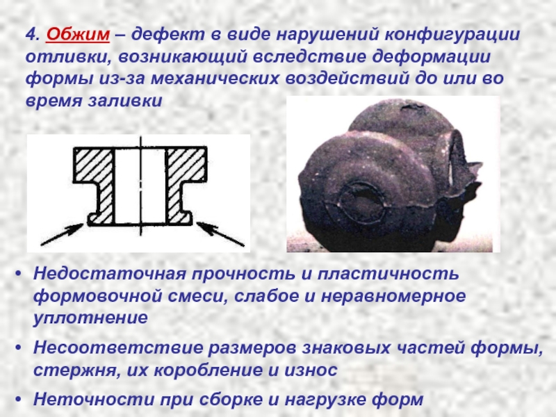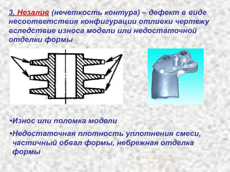 Недостаточная плотность уплотнения смеси, частичный обвал формы, небрежная отделка формы