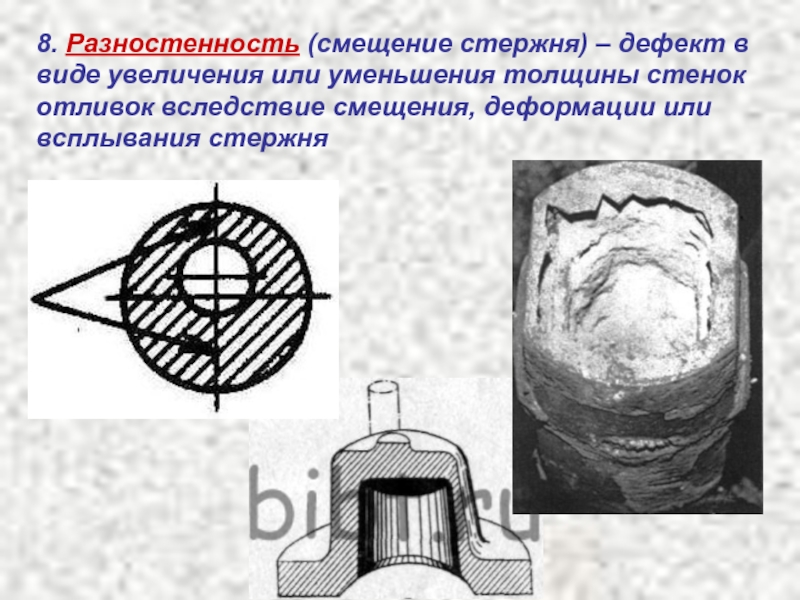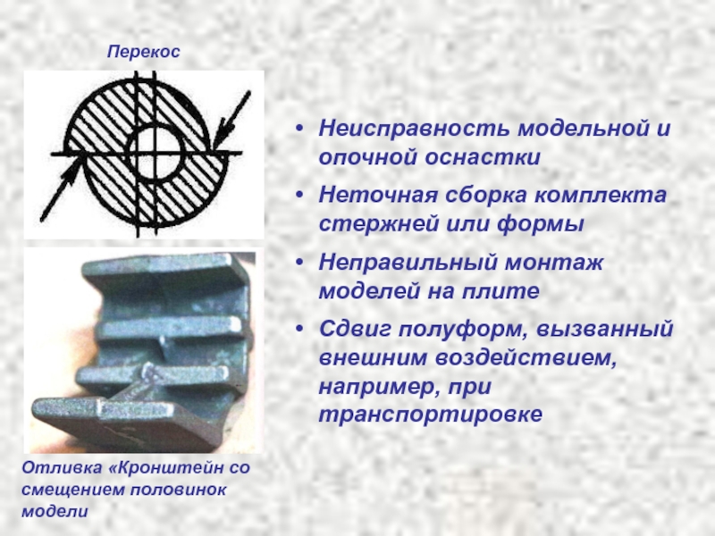 Несоответствие размеров знаковых частей формы, стержня, их коробление и износ
