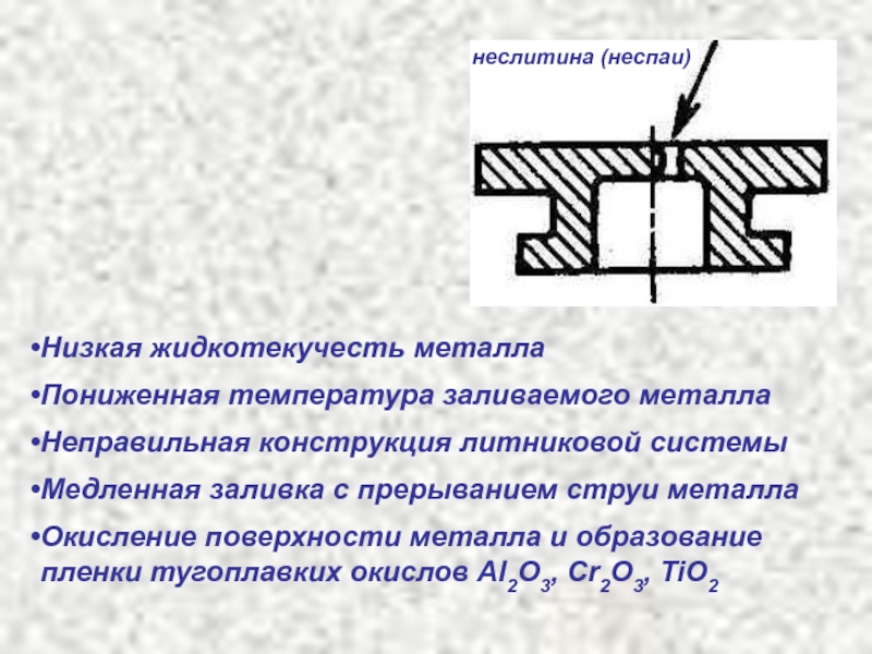 Неслитины представляют собой несплошности, начинающиеся у поверхности слитка. Неслитины возникают в результате частичной кристаллизации сплава на открытой поверхности.