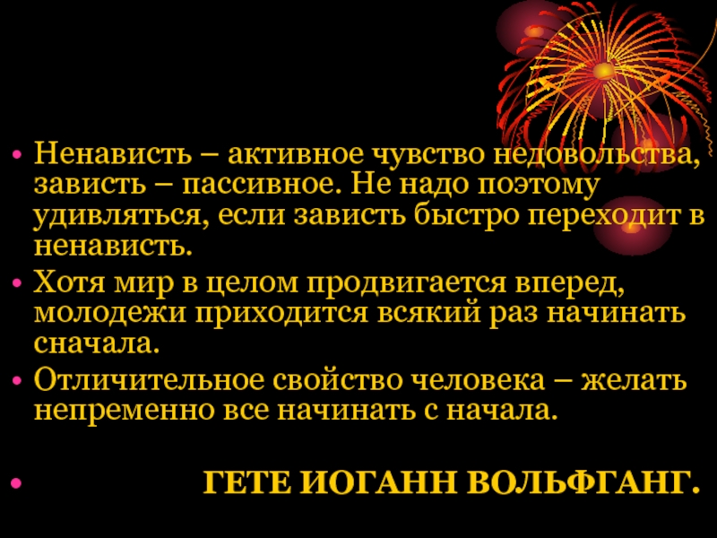 Ненависть – активное чувство недовольства, зависть – пассивное. Не надо поэтому