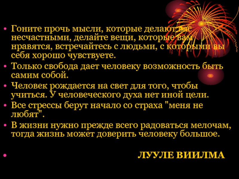 Гоните прочь мысли, которые делают вас несчастными, делайте вещи, которые вам