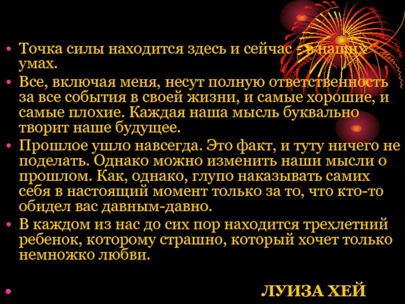 включая меня, несут полную ответственность за все события в своей жизни, и самые хорошие, и самые плохие. Каждая наша мысль буквально творит наше будущее.
