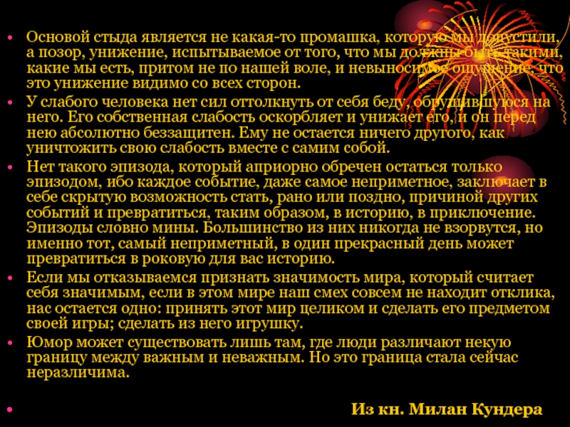 Основой стыда является не какая-то промашка, которую мы допустили, а позор,
