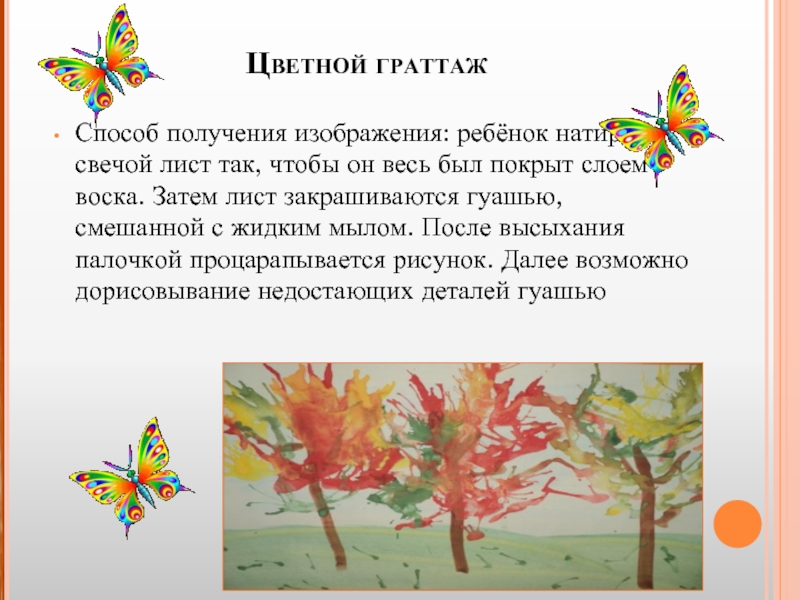 Способ получения изображения: ребёнок рисует свечой на бумаге. Затем закрашивает