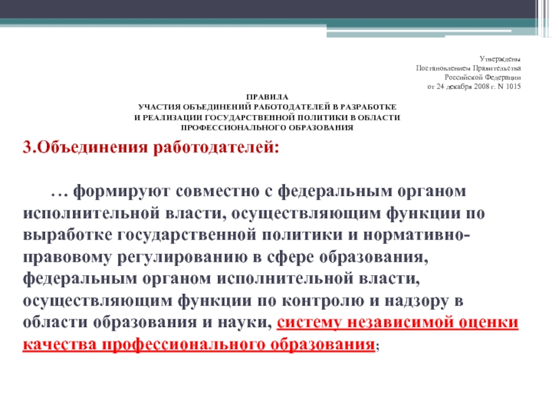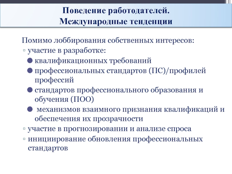 УЧАСТИЯ ОБЪЕДИНЕНИЙ РАБОТОДАТЕЛЕЙ В РАЗРАБОТКЕ