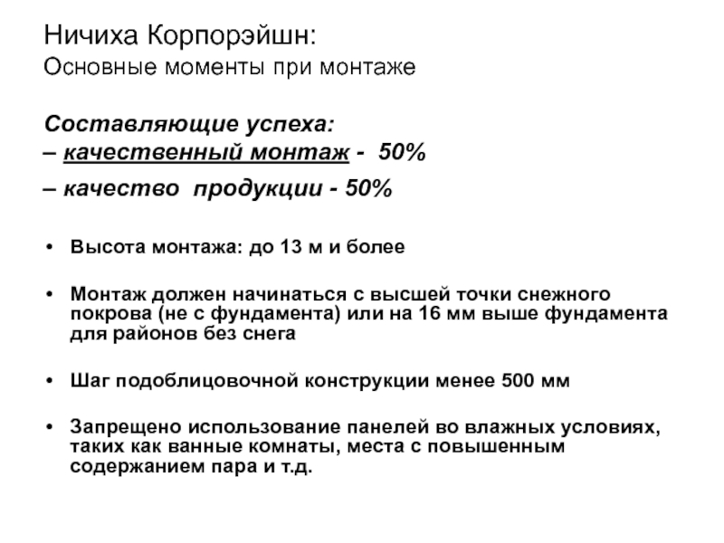 Монтаж должен начинаться с высшей точки снежного покрова (не с фундамента) или на 16 мм выше фундамента для районов без снега