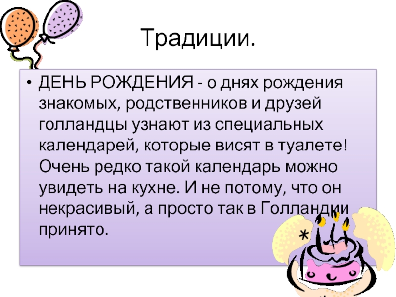 ДЕНЬ РОЖДЕНИЯ - о днях рождения знакомых, родственников и друзей голландцы