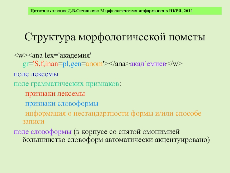 Цитата из лекции Д.В.Сичинавы: Морфологическая информация в НКРЯ, 2010